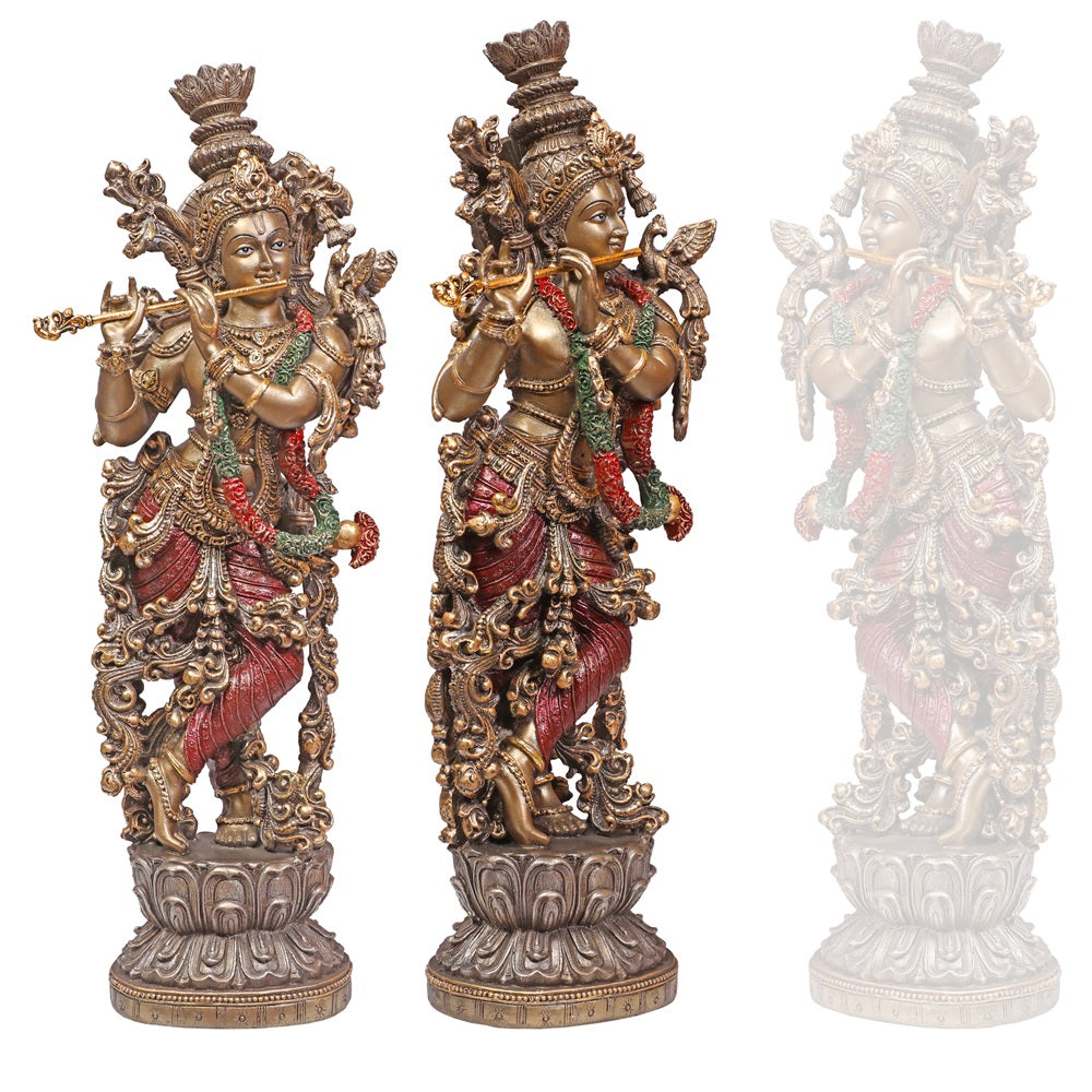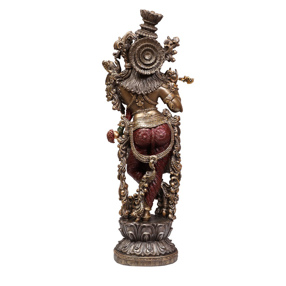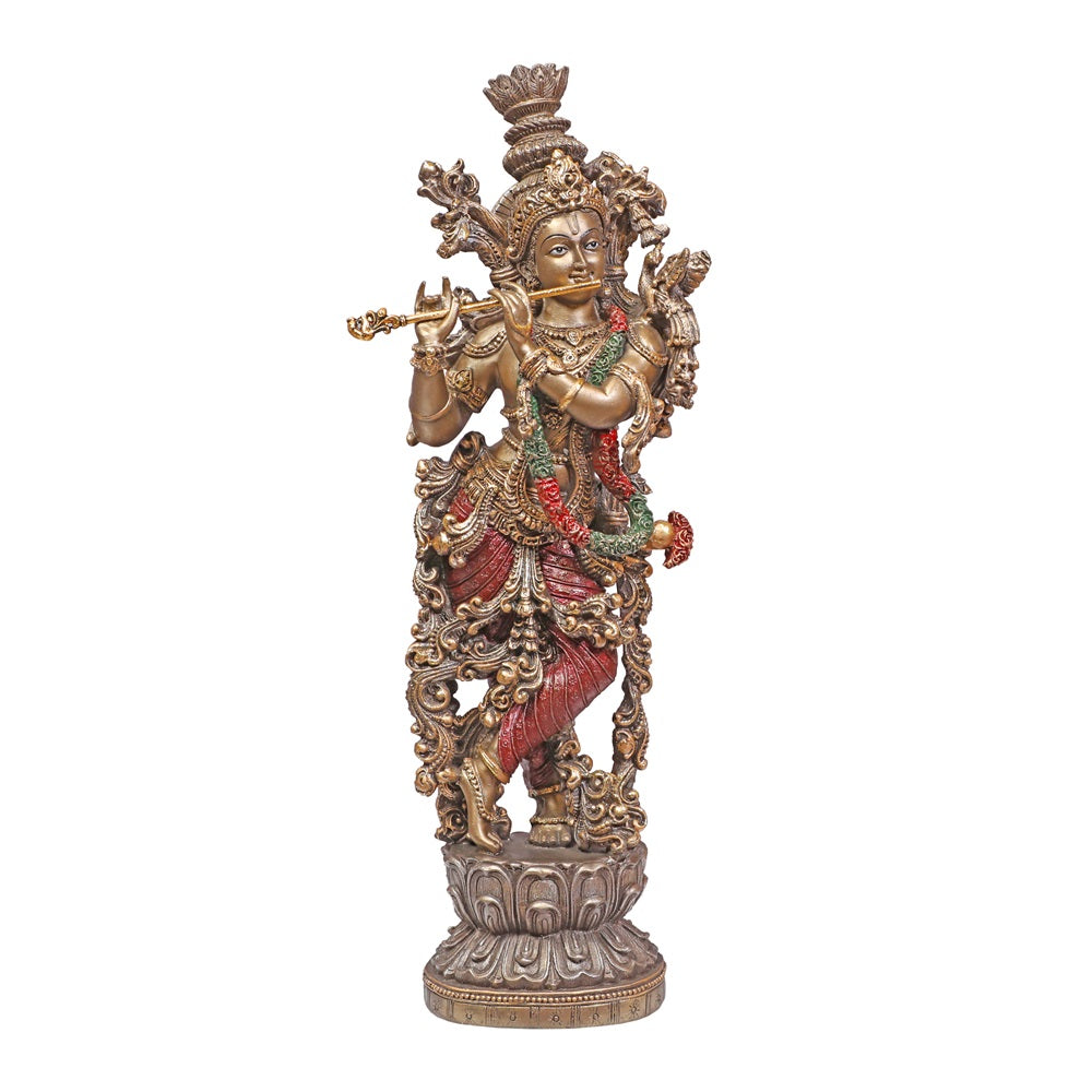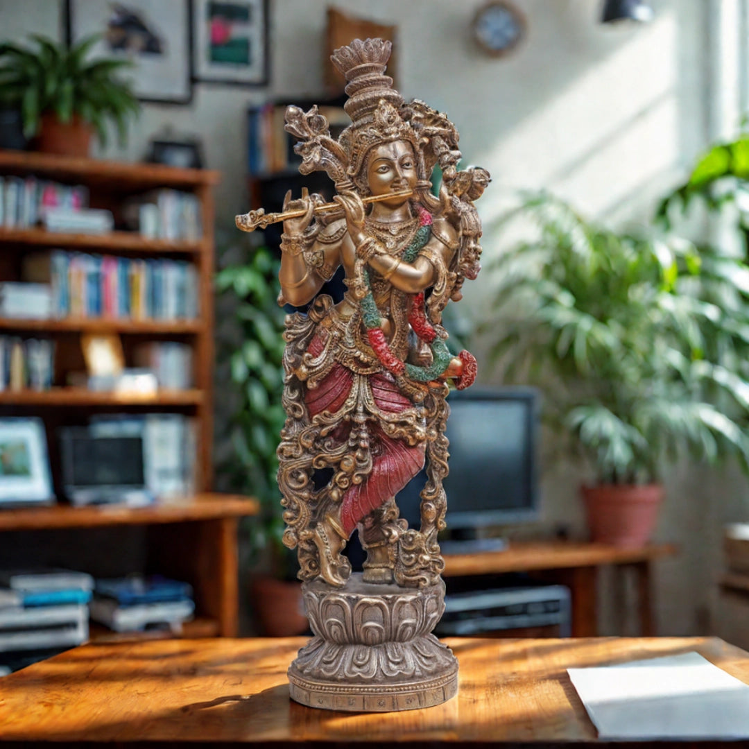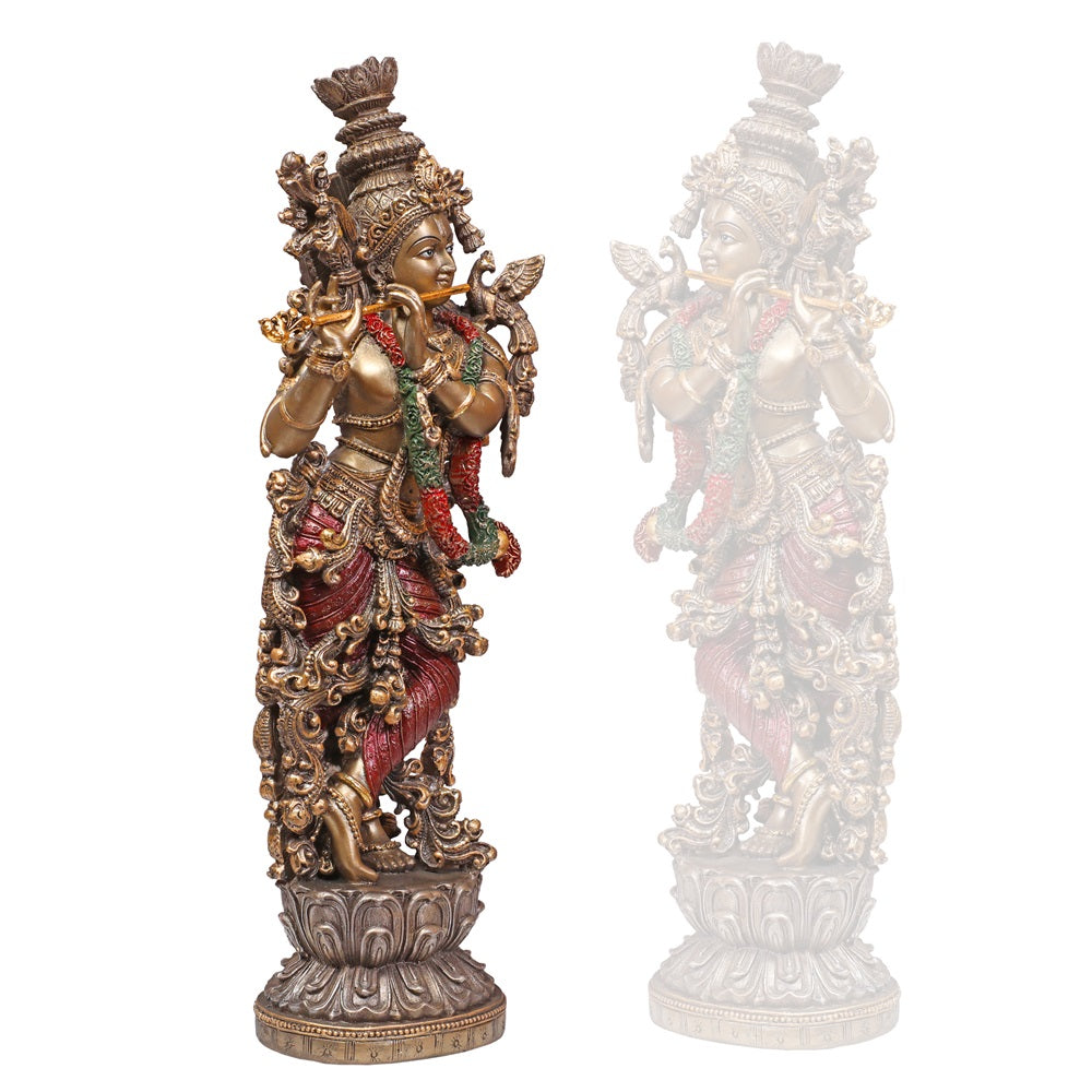 Ashnam Divine Melodies Krishna Playing Flute Figurine - Gold & Red, 37cm