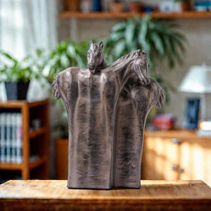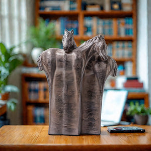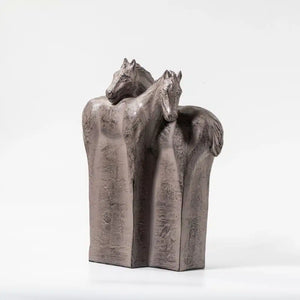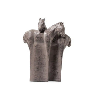 The abstract couple horse sculpture symbolises partnership and unity through its fluid design. The rust iron finish lends a contemporary yet rustic touch, creating a statement piece with a meaningful narrative.