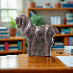This abstract horse sculpture is a modern interpretation of freedom and strength. Crafted in rust iron, it complements contemporary and industrial interiors with ease. Its artistic form brings depth and character to any setting, celebrating the timeless essence of the horse.