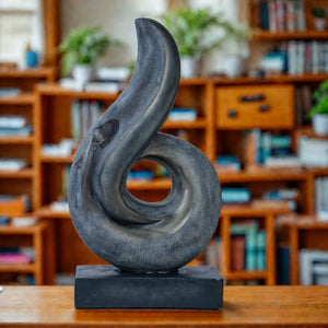 An art piece featuring a central void and a body reminiscent of a flame's shape. Crafted with artistic flair and symbolic depth, this captivating artwork evokes the essence of passion and inspiration. Whether displayed in a living room, studio, or gallery, it becomes a focal point of contemplation and imagination. Embrace the transformative power of creativity and elevate your decor with this striking statement piece.