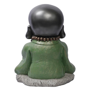 Ashnam Baby Monk Statue Engaged in Prayer - Black Green, 30 Cm