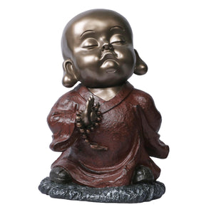 Ashnam Baby Monk Statue Sharing Divine Blessings - Bronze Maroon, 32 Cm