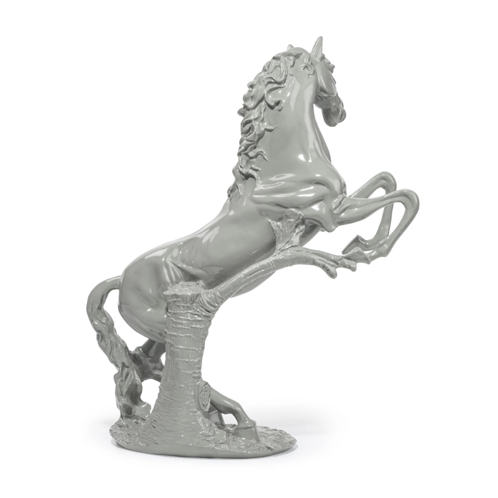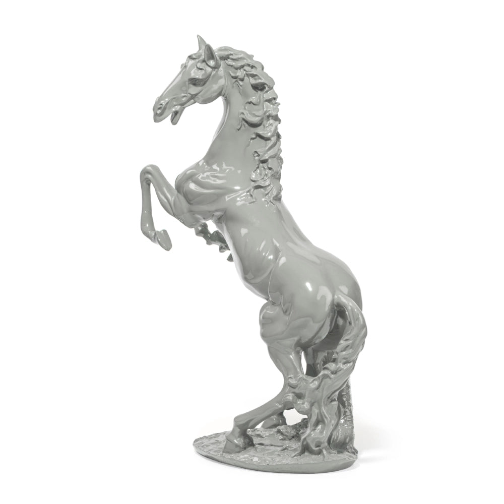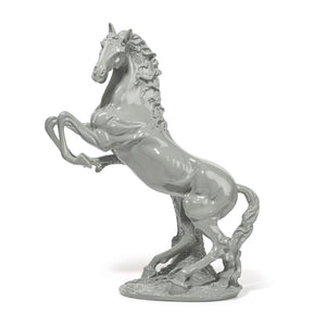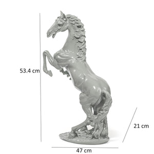 This jumping horse sculpture in grey epitomises energy and elegance. Its striking pose and minimalist tone make it a statement piece for modern interiors celebrating movement and sophistication.