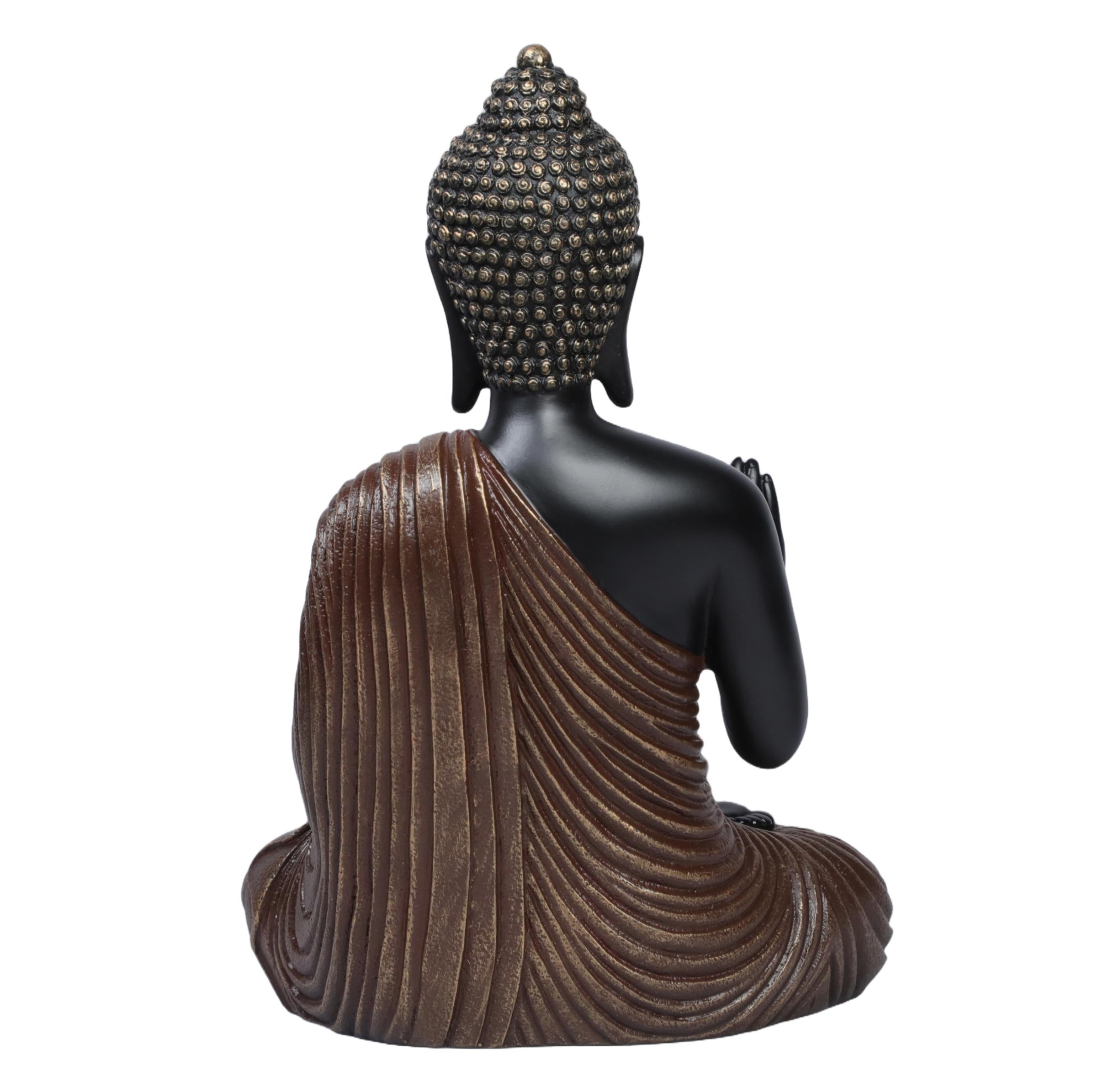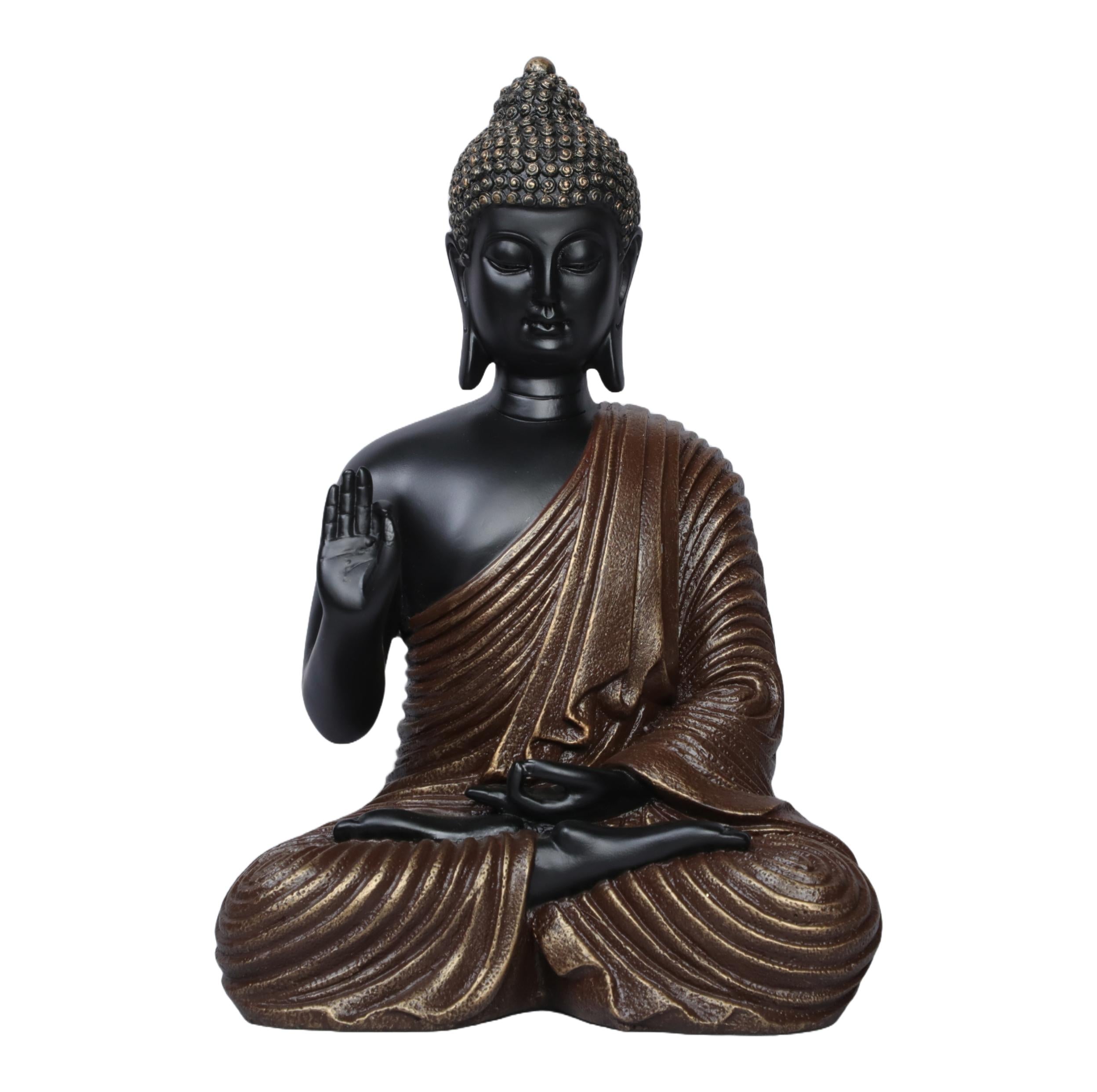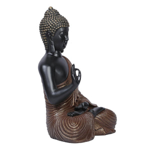 Ashnam Blessing Buddha Statue in Gyana Mudra With Hand Raised - Black Brown, 27 Cm