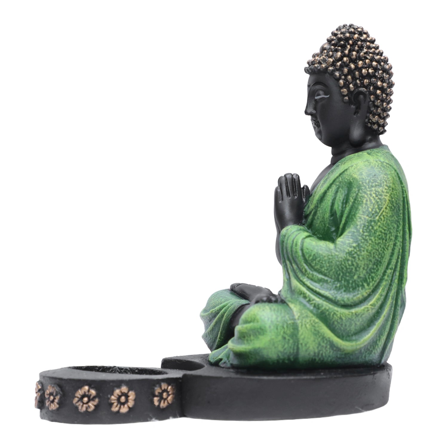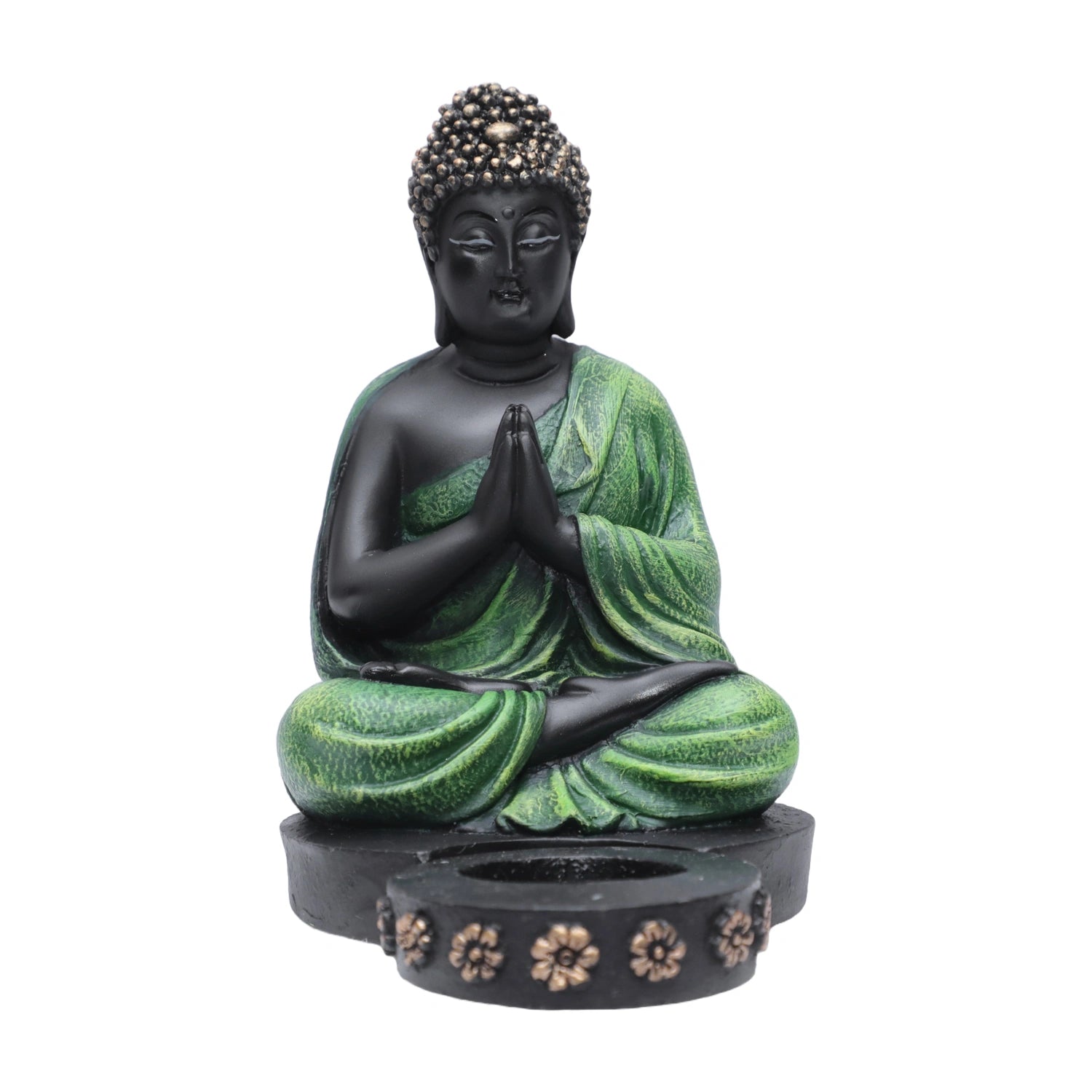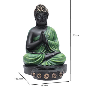 Ashnam Buddha Figurine with T-Light Holder - Black & Green, 25.4cm