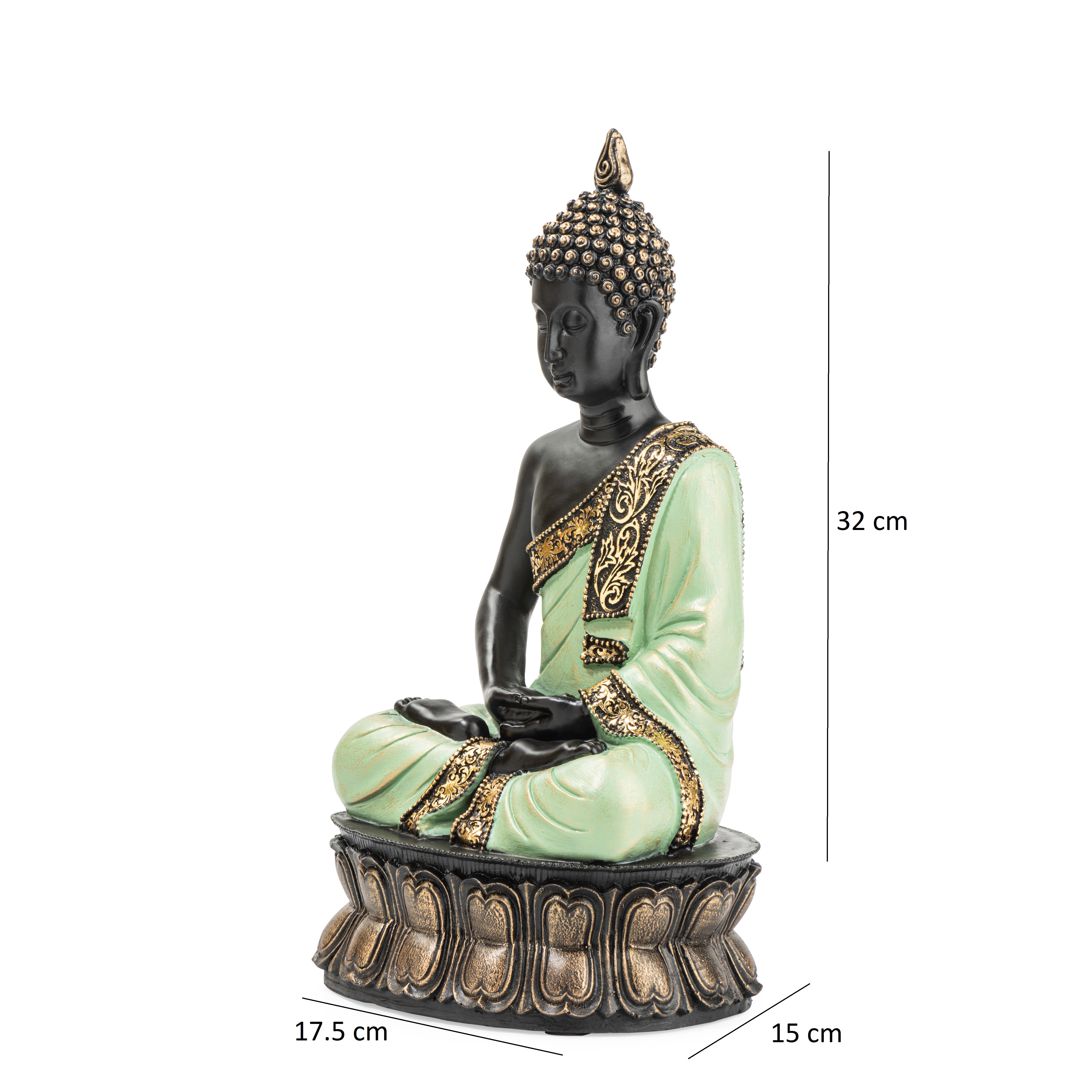The Buddha statue meaning of Dhyana Mundra is to encourage calm and peacefulness. Sometimes the Buddha statue depicts the Dhyana Mudra through the left hand with the left hand only.