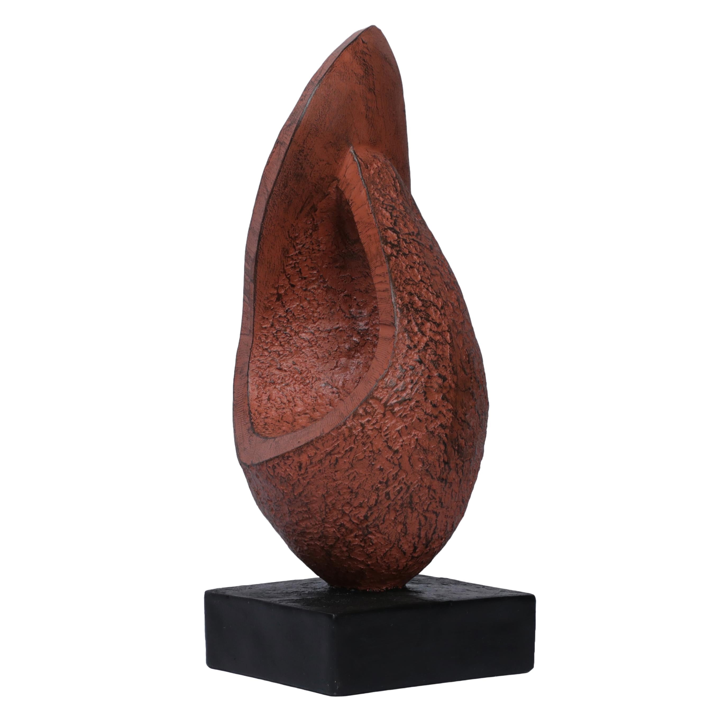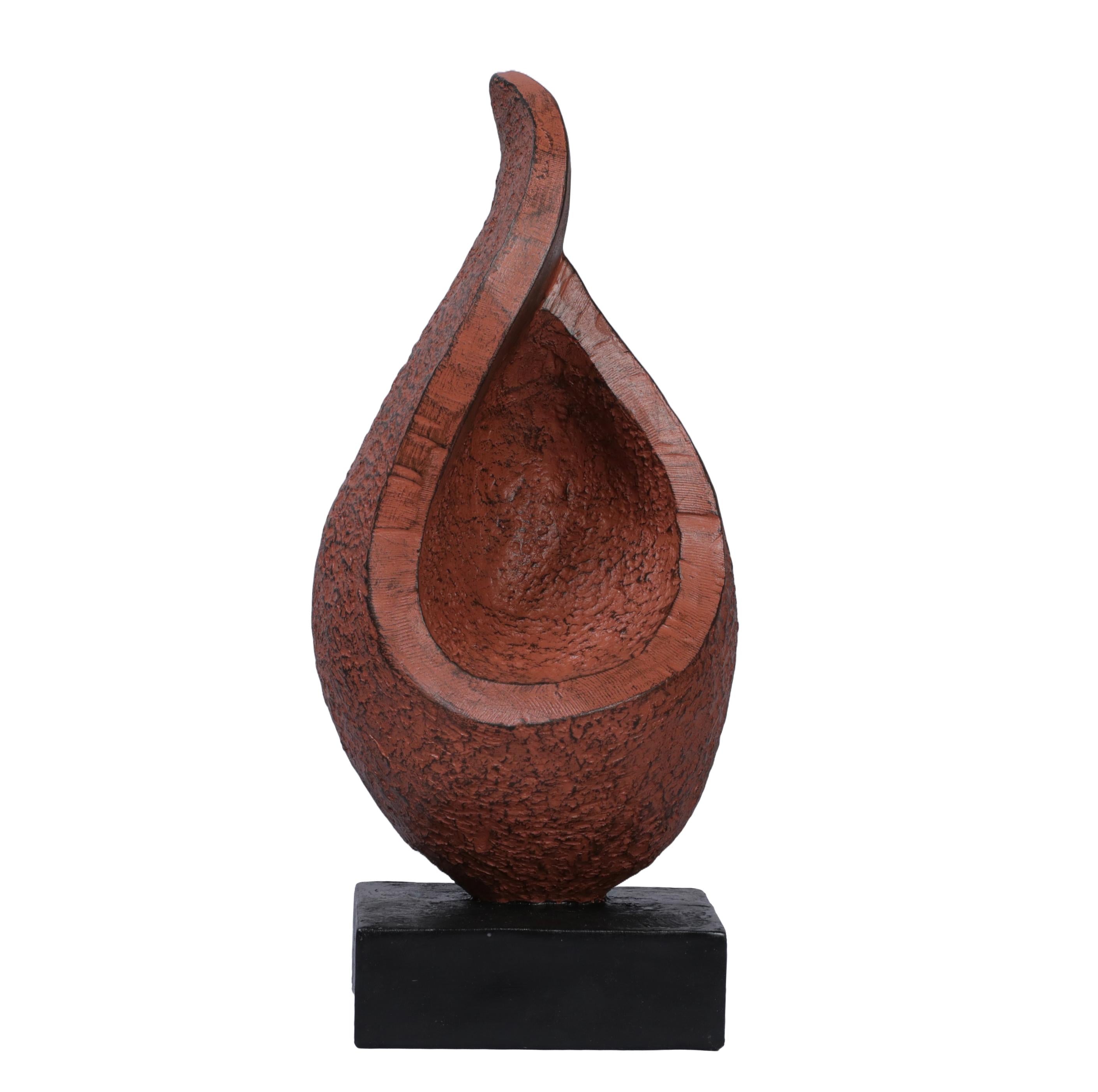 Ashnam Central Caved Minimal Sculpture - Terracotta, 30 Cm