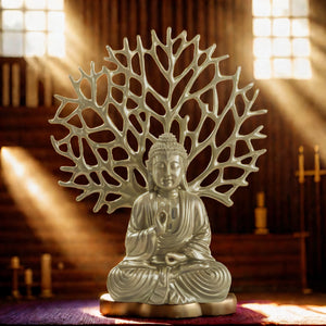 Ashnam Debating Buddha with Tree Decorative Showpiece – 31.3 Cm, Olive