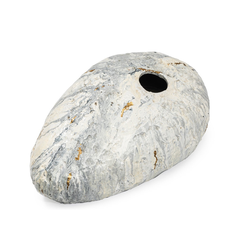 Ashnam Elegant Polyresin Stone Finish Flower Pot - Antique White, 28cm