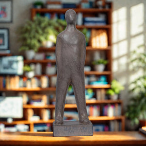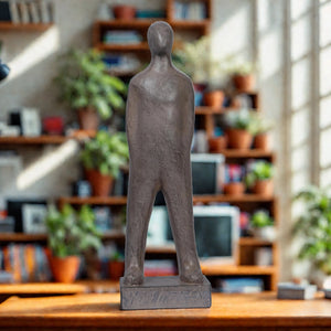 At 33 cm, this sculpture radiates mystery and sophistication. The figure’s enigmatic stance, combined with the rust iron finish, creates a striking visual impact. The abstract design invites interpretation, making it a conversation starter in any space. Whether placed in a living room, study, or gallery, this piece adds a touch of luxury and intrigue to your decor.