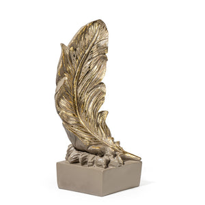 Ashnam Feather of Elegance Calandi's Feather Sculpture - Ash Grey & Gold, 30cm