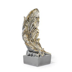 Ashnam Feather of Elegance Calandi's Feather Sculpture - Grey & Gold, 30cm