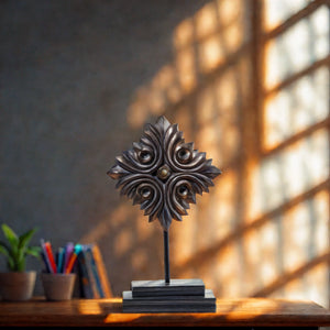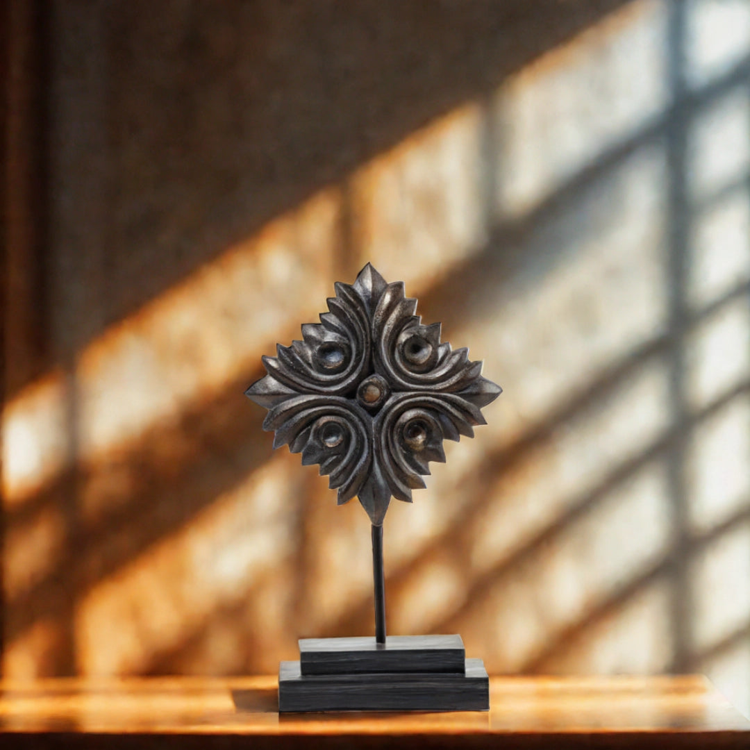 Illuminate your home with elegance using the Floral Accent on Stand. Its intricate detailing adds a touch of sophistication to any room or outdoor space, bringing vibrancy to your beautiful home. This exquisite piece is a perfect gift for enthusiasts of Eastern craft and décor, showcasing exceptional design and craftsmanship.