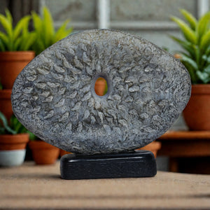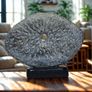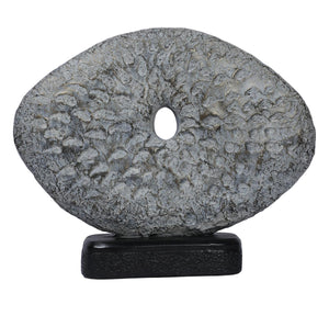 Featuring half of a YinYang symbol with a central void. Crafted with artistic finesse and symbolic depth, this captivating piece adds a touch of harmony to any environment. Whether displayed in a living room, office, or meditation space, it becomes a focal point of contemplation and introspection. Embrace the timeless symbolism of the YinYang and elevate your decor with this striking statement piece.