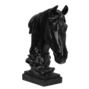 This black horse head sculpture exudes power and poise. With its sleek design and intricate detailing, it serves as a bold accent piece for any space. Its timeless aesthetic blends seamlessly with modern or classic interiors, reflecting dignity and strength.