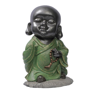 Ashnam Little Guardian of Tranquility: Baby Monk Statue Adorning Pearls - Black Green, 32 Cm