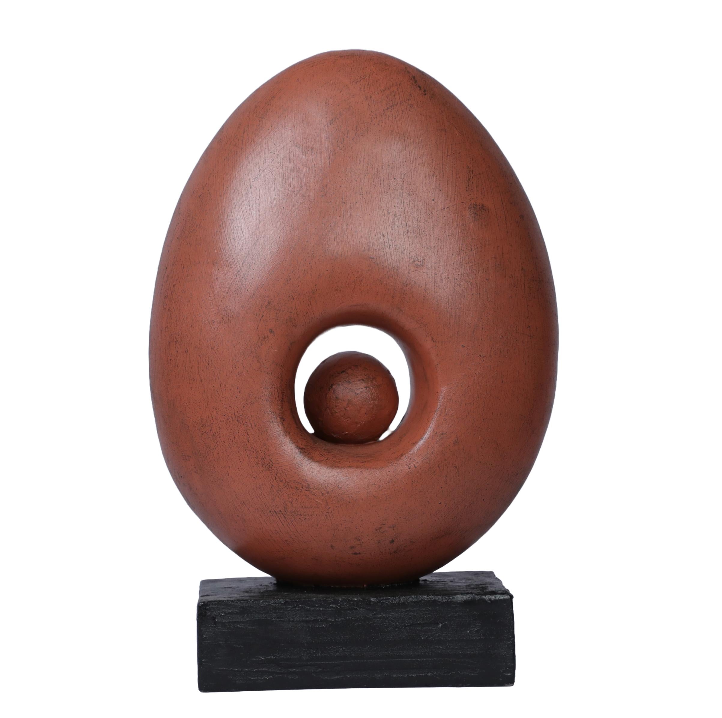 Ashnam Oval-Shaped Sculpture with Central Circle & Space - Terracotta, 28 Cm