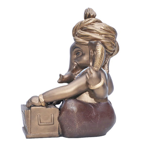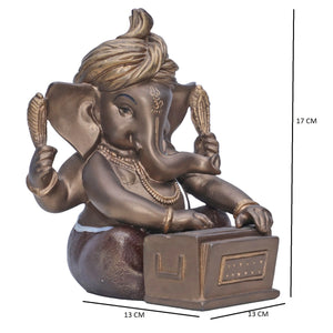 Ashnam Pagadi Harmonium Music Ganesha - Bronze & Red, 17cm