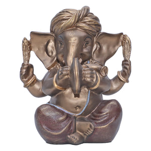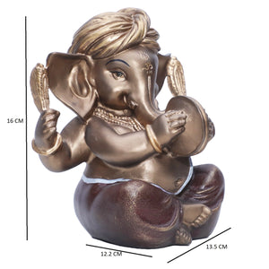 Ashnam Pagadi Manjira Music Ganesha - Bronze & Red, 16cm