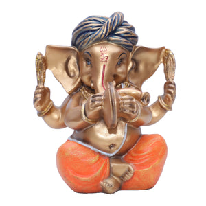 Ashnam Pagadi Manjira Music Ganesha - Gold & Orange, 16cm
