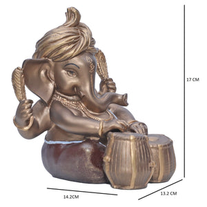 Ashnam Pagadi Tabla Music Ganesha - Bronze & Red, 17cm