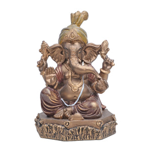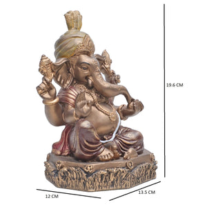 Ashnam Pheta Ganesha Showpiece - Bronze & Red, 19.6cm