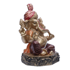 Ashnam Pheta Ganesha Showpiece - Gold & Red, 19.6cm