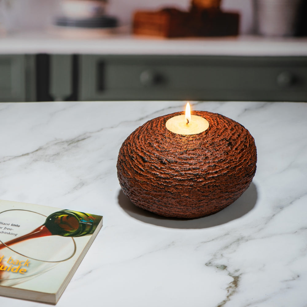 Ashnam Polyresin Stone Finish Tealight Holder - Terracotta, 13cm
