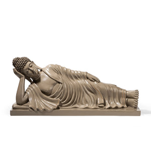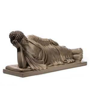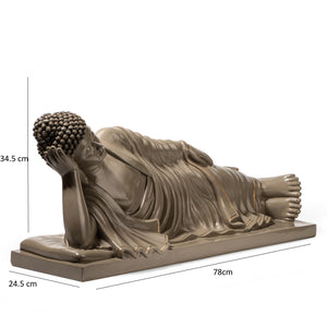 Reclining Buddha Statue is a representation of Buddha lying down at the time of his Mahaparinirvana. This particular statue represents the historical Shakyamuni Buddha during the last phase of his illness. The Reclining Buddha statue is seen lying on the right side that is facing west and the head rests on its right hand. The right hand is seen placed under the head or on the pillow.