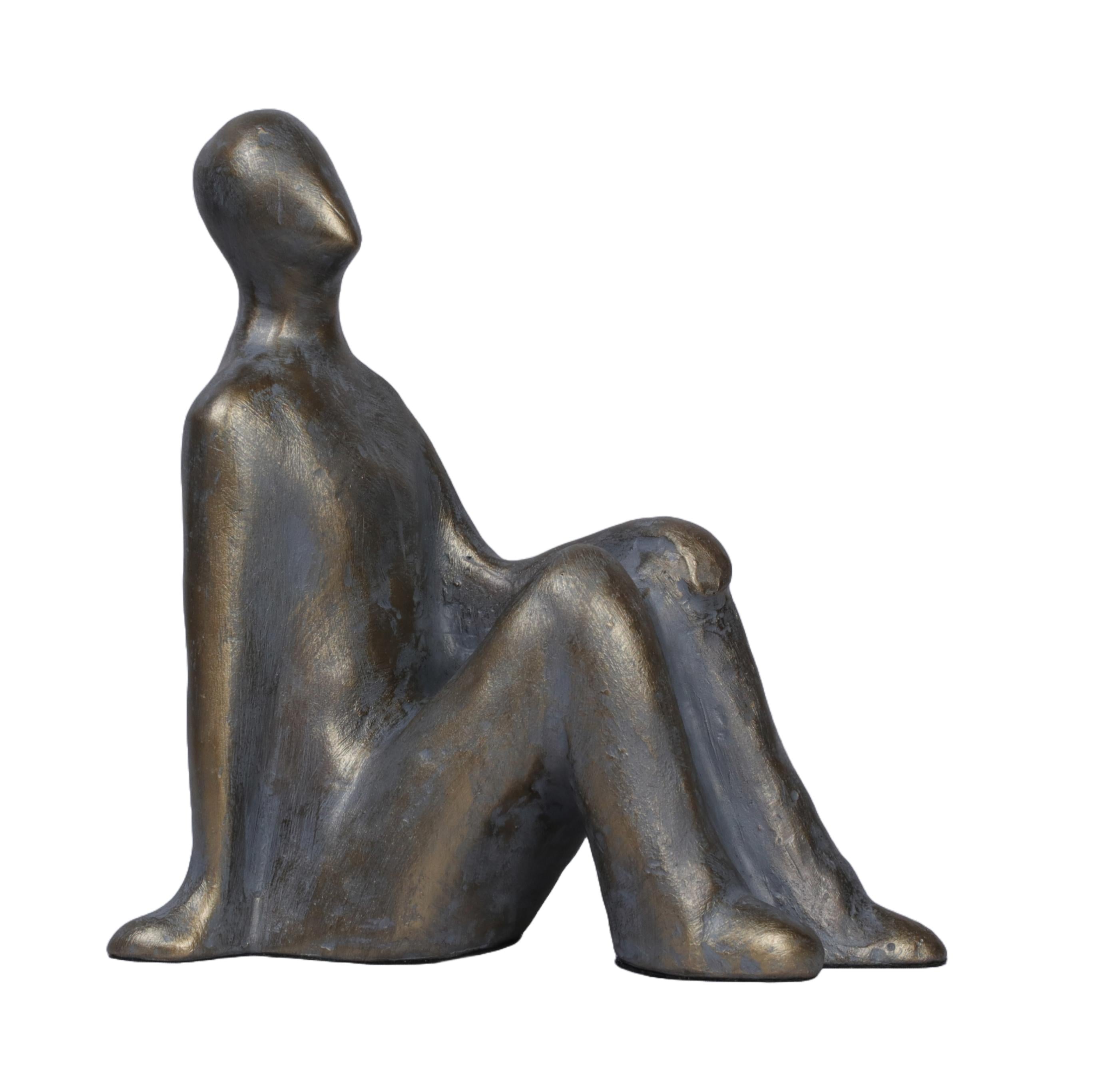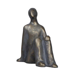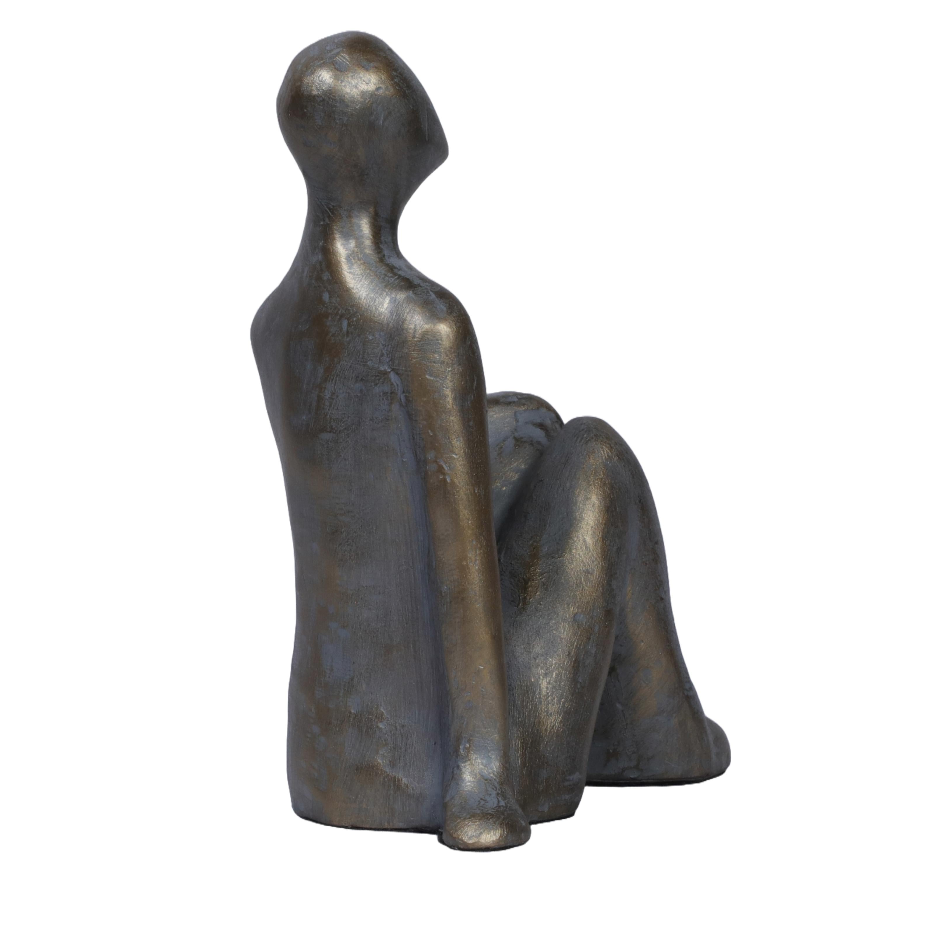 Compact yet deeply expressive, this 19 cm sculpture features a figure resting in a reflective pose. The antique gold finish highlights its elegant contours, while the abstract design invites viewers to pause and ponder its artistic depth. Its small size makes it an ideal accent for desks, shelves, or bedside tables, offering a touch of quiet sophistication to your decor. Perfect as a thoughtful gift or a personal keepsake, it resonates with introspection and style.