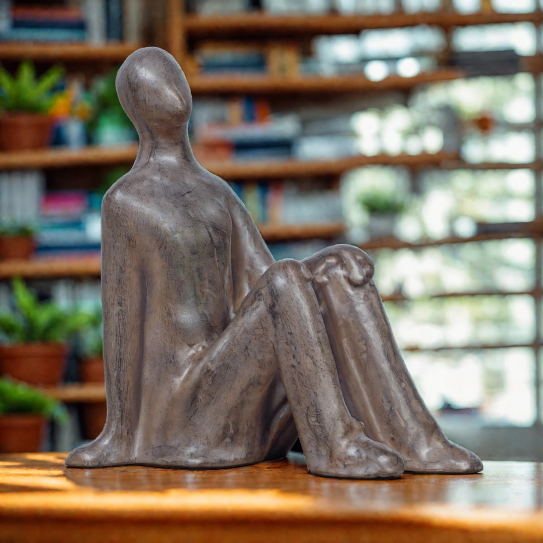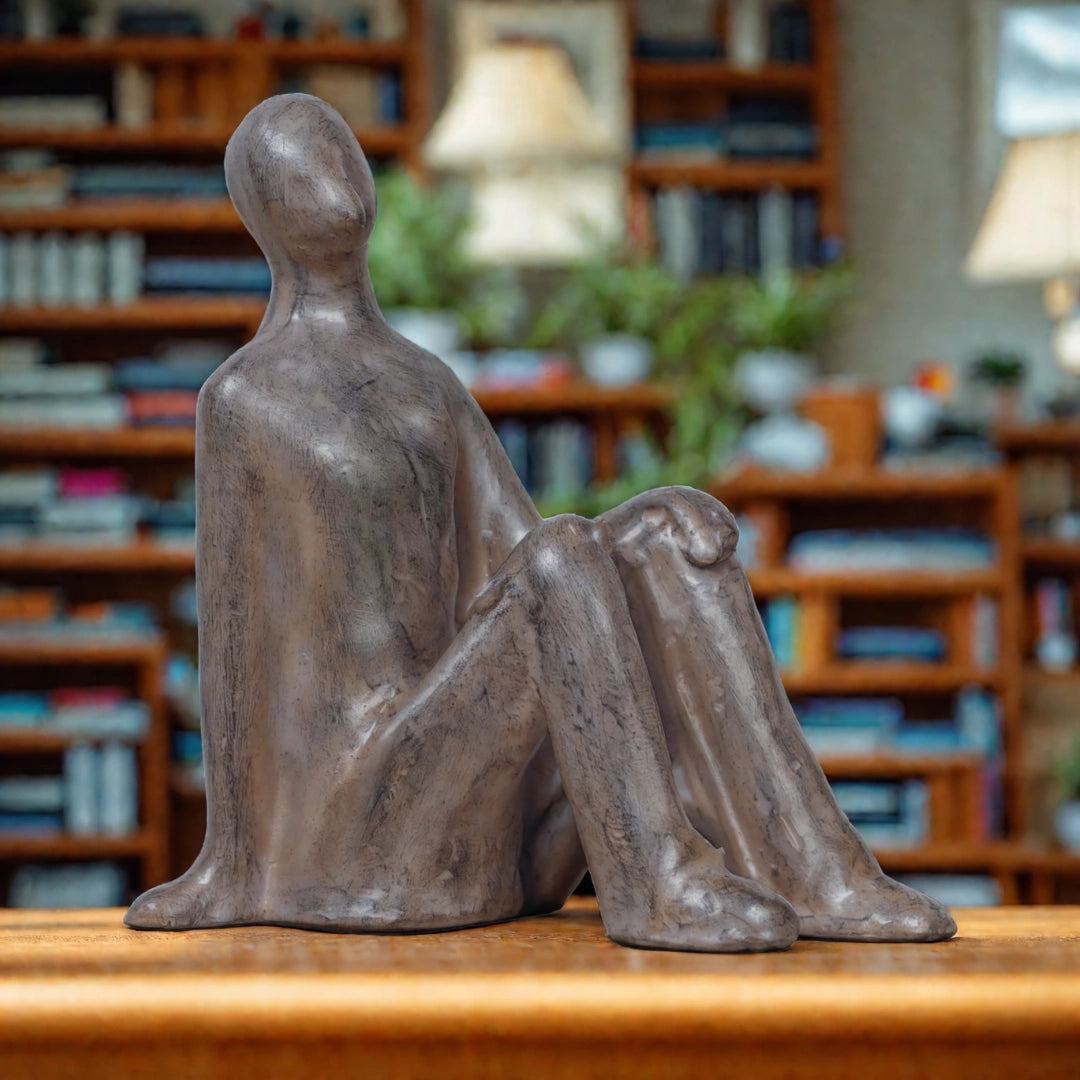 Compact yet deeply expressive, this 19 cm sculpture features a figure resting in a reflective pose. The rust iron finish highlights its elegant contours, while the abstract design invites viewers to pause and ponder its artistic depth. Its small size makes it an ideal accent for desks, shelves, or bedside tables, offering a touch of quiet sophistication to your decor. Perfect as a thoughtful gift or a personal keepsake, it resonates with introspection and style.