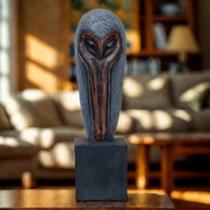 The regal guardian wisebird stands as a symbol of authority and wisdom. Its smokey grey and copper rust tones and meticulous detailing create a commanding yet elegant presence, ideal for interiors that value timeless sophistication.