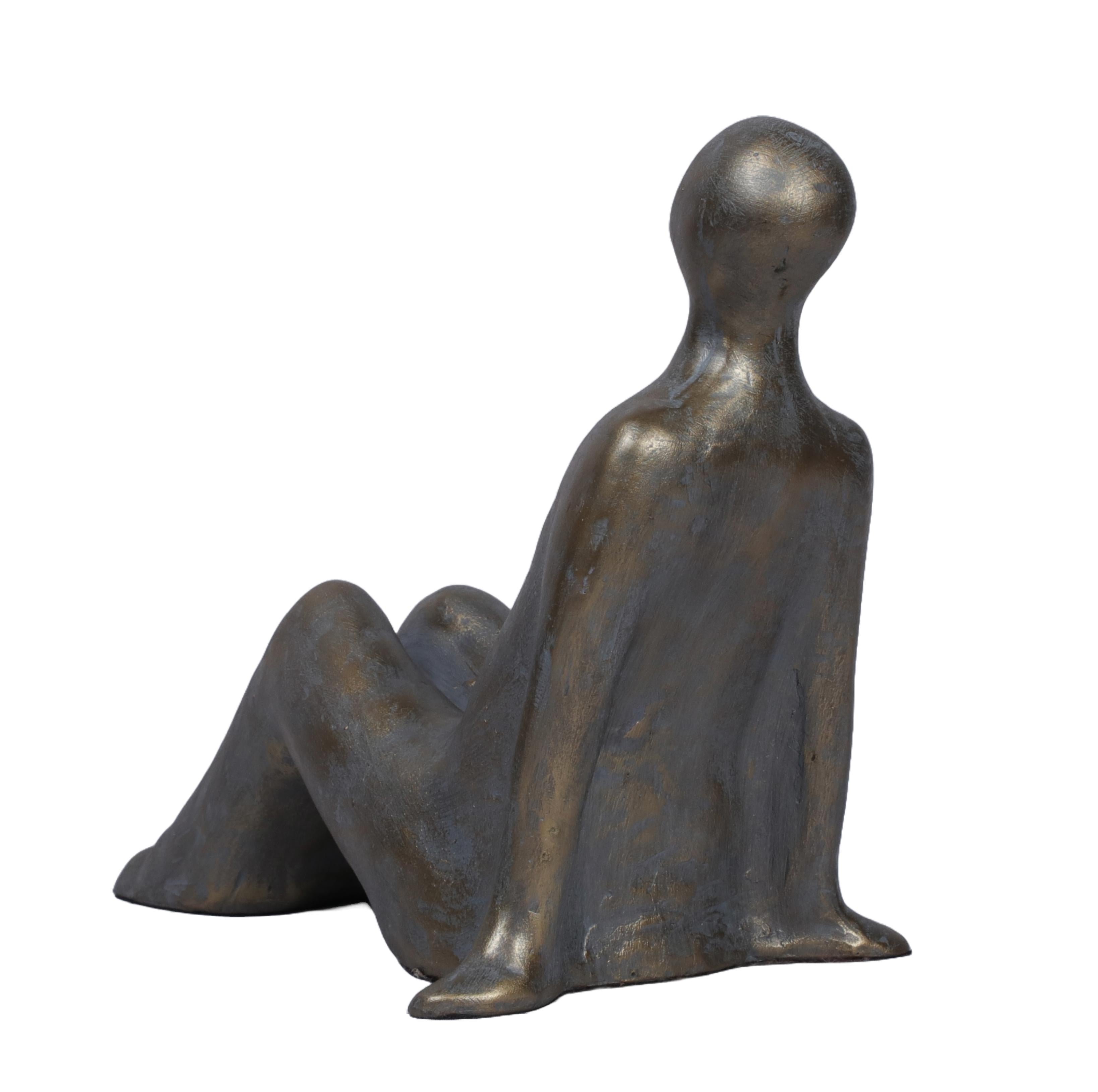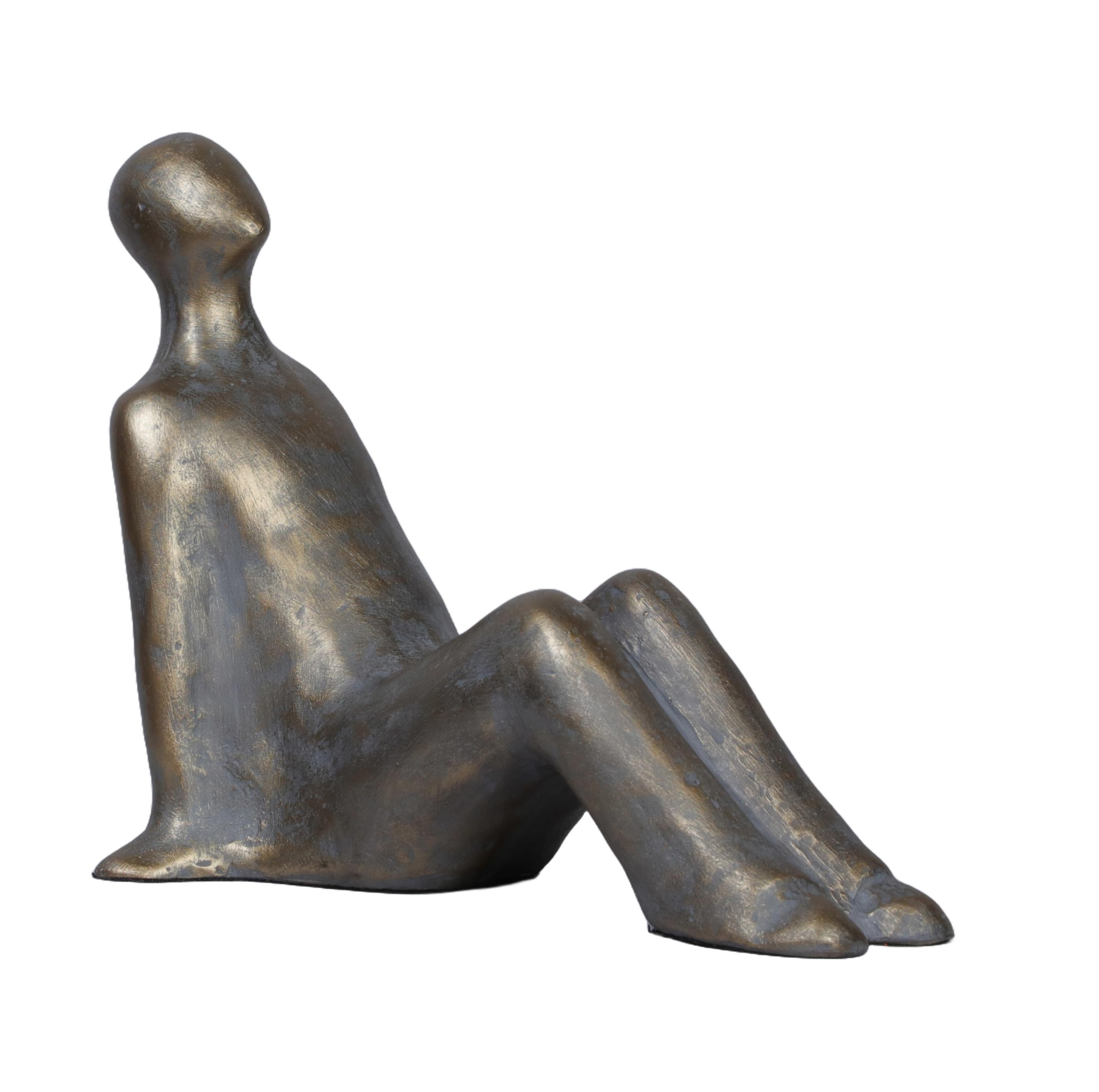 Ashnam Relaxed Seated Pose Abstract Human Showpiece - Antique Gold, 26 Cm