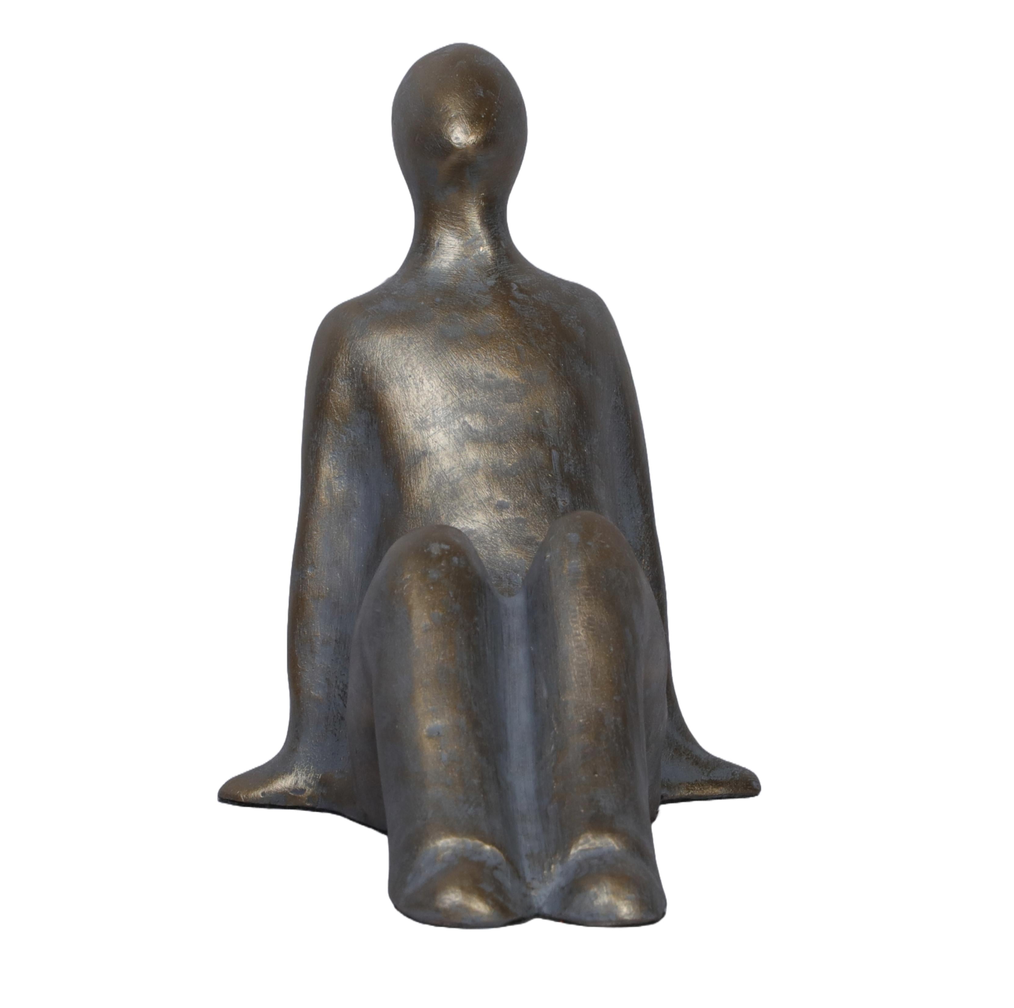 This beautifully crafted 26 cm showpiece depicts a figure in a serene seated pose, exuding relaxation and harmony. The antique gold finish enhances its smooth, polished look, making it a versatile decor piece for living rooms, bedrooms, or meditation spaces. The abstract design radiates calmness, offering a sense of balance and tranquillity to its surroundings. Its compact size allows it to fit seamlessly into any decor setup while adding a contemporary artistic flair.
