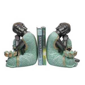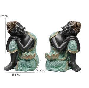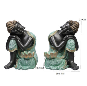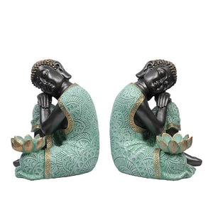 Ashnam Resting Buddha Bookend - Left Side & Right Side, Set of Two - Black & Pista, 23cm