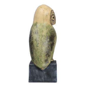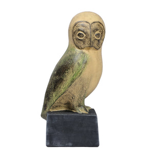 The rightward-gazing wisebird showcases quiet confidence and observation. Its rust yellow tones and intricate craftsmanship make it an elegant piece, blending beauty and storytelling for your décor.