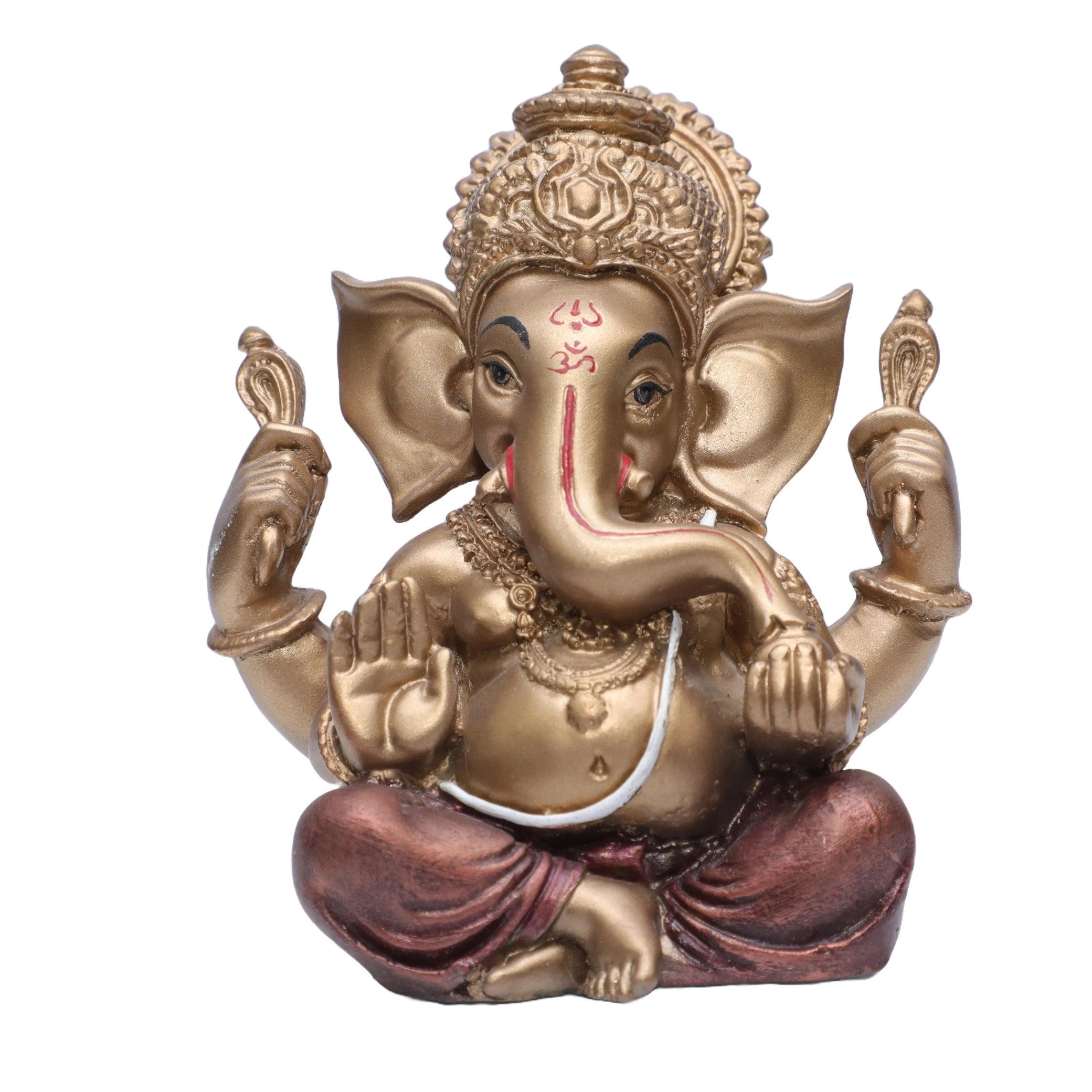 Ashnam Small Blessing Ganesha Decorative Showpiece - Gold & Red, 13.5cm
