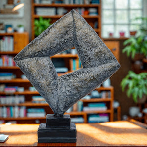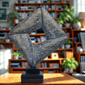 Infuse your space with contemporary flair using our Tilted Squarical Modern Art. With its unique design featuring a square-shaped gap in the center, this piece adds a touch of avant-garde sophistication to any environment. Perfect for enhancing the ambiance of your home, office, or gallery, it invites curiosity and conversation, making it a captivating focal point wherever it's placed. Embrace the modern aesthetic and elevate your decor with this striking statement piece.