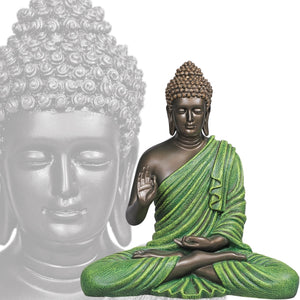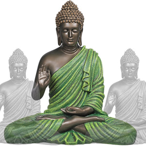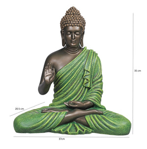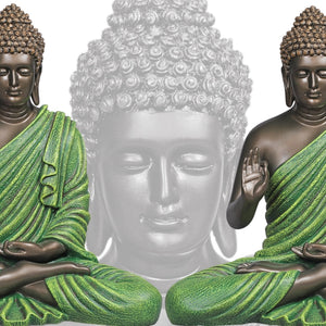 Blessing Buddha 15 Inch Decorative Showpiece – Bronze & Green
