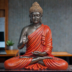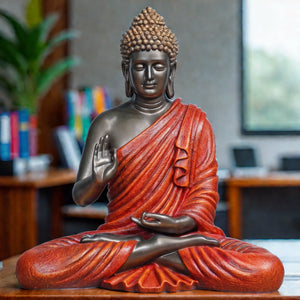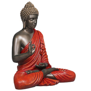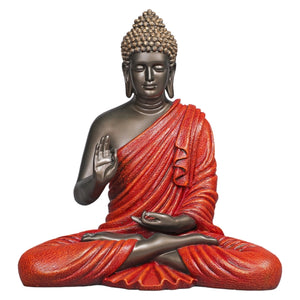 Blessing Buddha 15 Inch Decorative Showpiece – Bronze & Red
