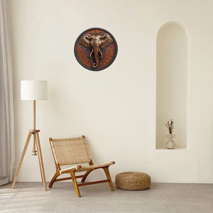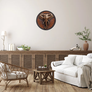 Elephant Head Wall Art, 28.5cm, Maroon & Gold