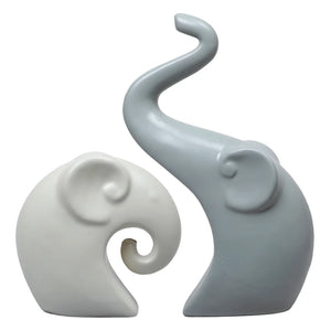 This figurine of a mother elephant with her baby celebrates love and protection. The vibrant oyster white and grey finish and intricate design make it a heartfelt décor piece symbolising family bonds.