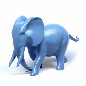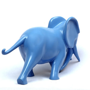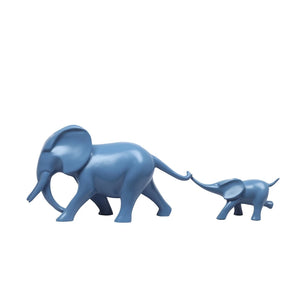 Mom and Baby Elephant Resin Animal Figurine, 24.4cm, Blue