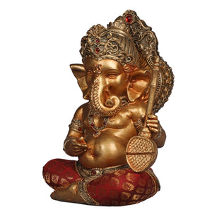 Lord ganesha is the god of all good beginnings. He is associated with success and overcoming obstacles. He also brings happiness in our lives. This artifact by handicrafts paradise brings to you lord ganesha in his most charming and endearing figures “a musical ganesha”. These figurine is made of high quality polyresin with glossy colours to bring life to your home. Details like musical instrument, crown, jewellery and clothing are adorned on it with great effort. Their finish is superb and is easy to maintain.