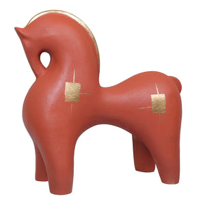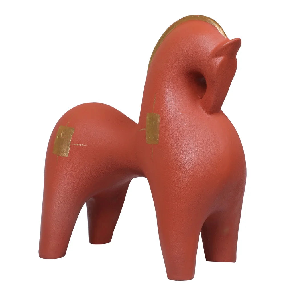 Polyresin Horse Sculpture Showpiece, 27.3cm, Terracotta & Gold