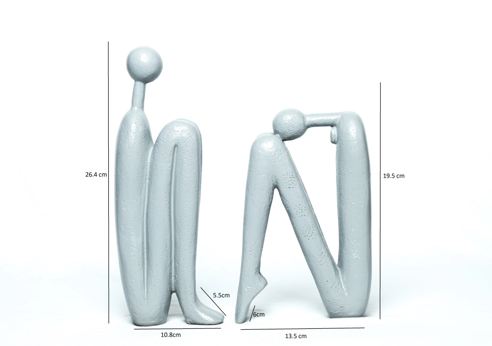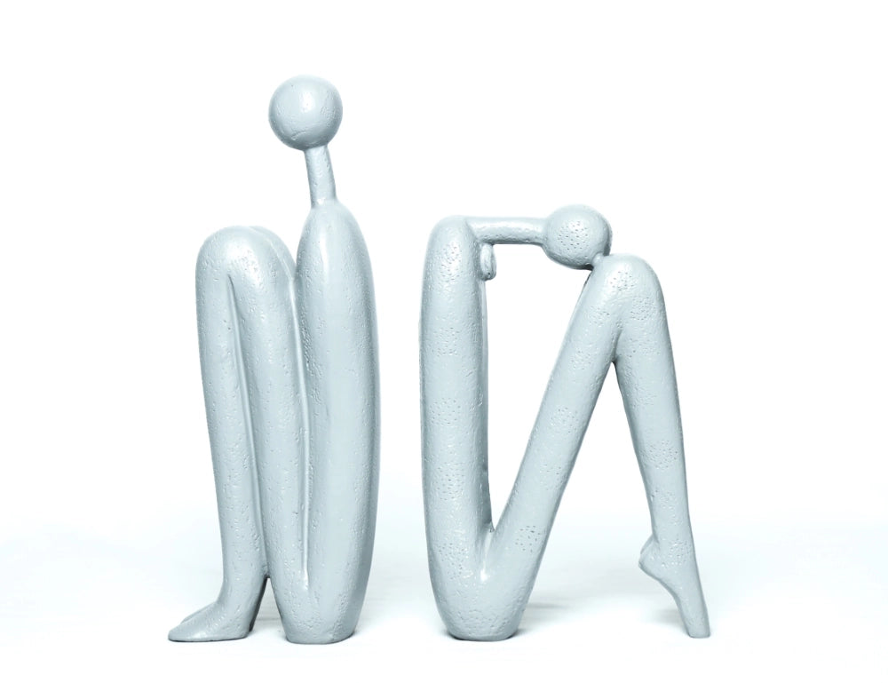 Thinking Man Bookend Figurine Human Sitting Sculpture – White, 26.4cm